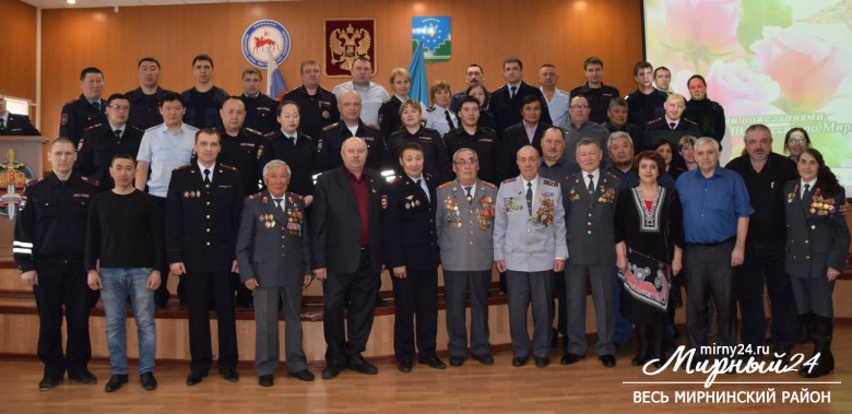 Присутствующих поздравили начальник ОМВД России по Мирнинскому району полковник полиции Алексей Игоревич Ощепков, член Общественного совета при ОМВД России по Мирнинскому району, председатель Совета ветеранов ВОВ и тыла полковник милиции в отставке Николай ФедосовичКулажин, а также заместитель председателя Совета ветеранов ОМВД России по Мирнинскому району подполковник милиции в отставке Владимир Ильич Гаврильев.